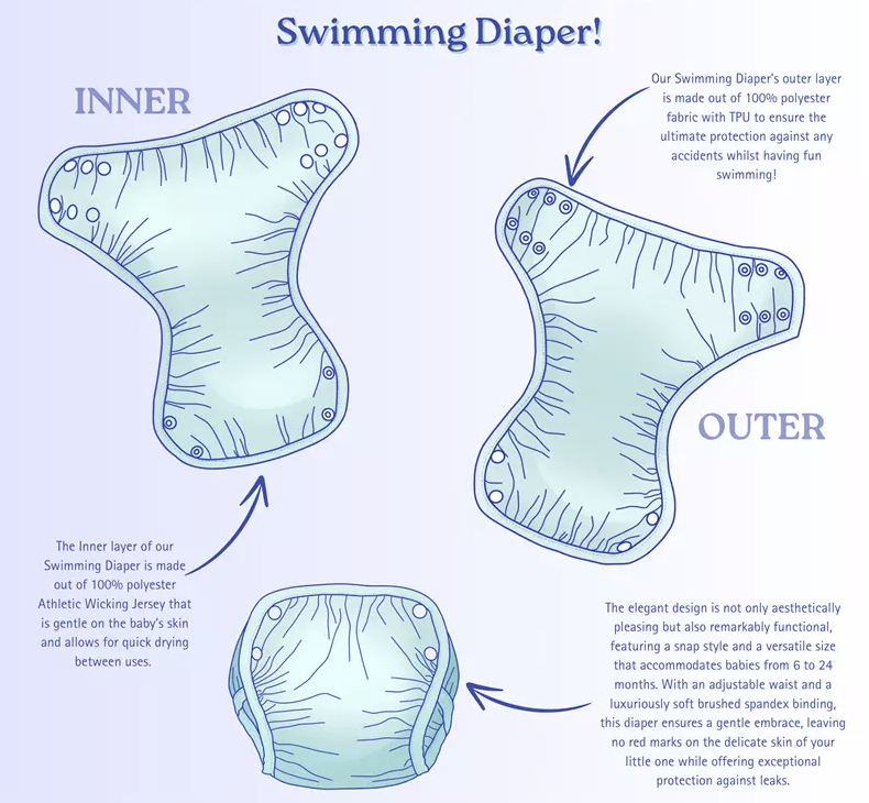 I also hear people say that a swim diaper is uncomfortable, but a modern swim diaper is actually very soft. A high-quality swim diaper is designed to move with the baby, allowing them to kick and splash without restriction. If your baby seems uncomfortable in their swim diaper, it is likely a sizing issue rather than a problem with the swim diaper itself. Once you find the right swim diaper, your baby won't even notice they are wearing a swim diaper. Education is the key to making the most of your swim diaper experience.